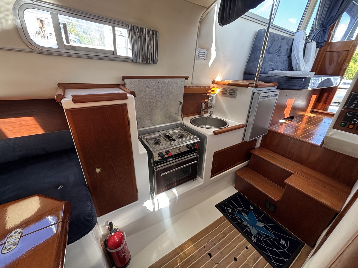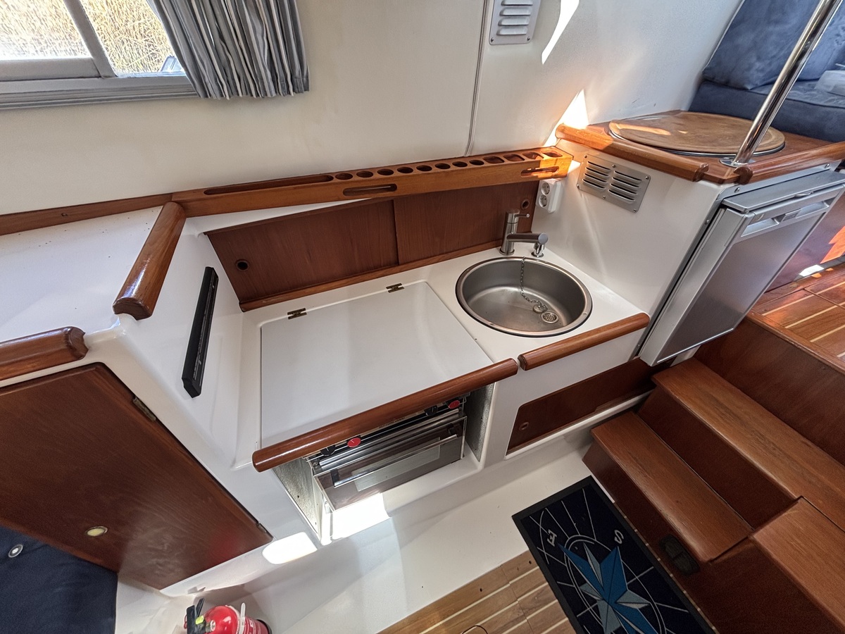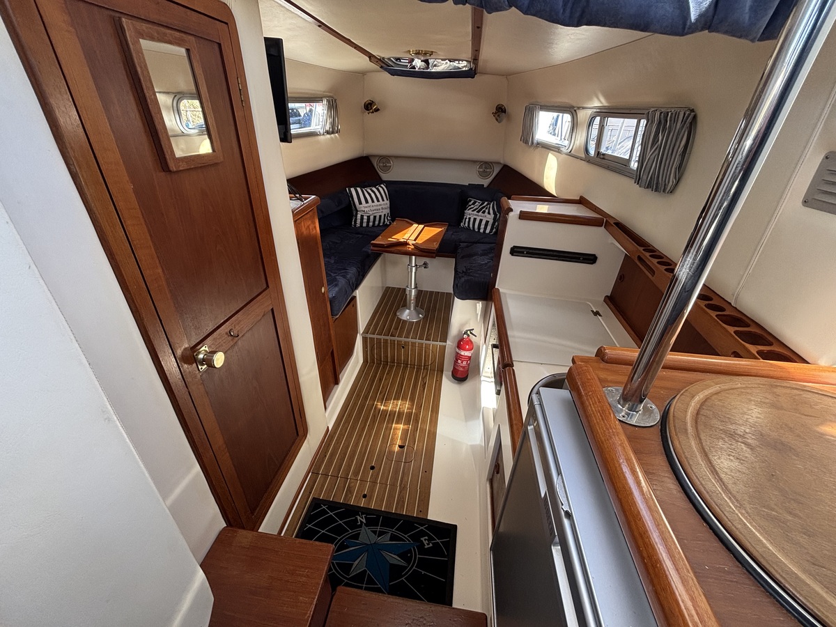 Te koop nette en solide Hardy 27 uit 1995, bekend om haar uitstekende vaareigenschappen en degelijke bouw. Deze boot is recent technisch flink opgewaardeerd met een zo goed als nieuwe Mitsubishi S4S dieselmotor (bouwjaar 2024) met slechts 8 draaiuren – praktisch nieuw dus. Daarnaast uitgerust met een Vetus boegschroef voor eenvoudig manoeuvreren in elke haven. Ideaal voor wie zorgeloos wil varen met de betrouwbaarheid van een klassieke Hardy en het comfort van moderne techniek.