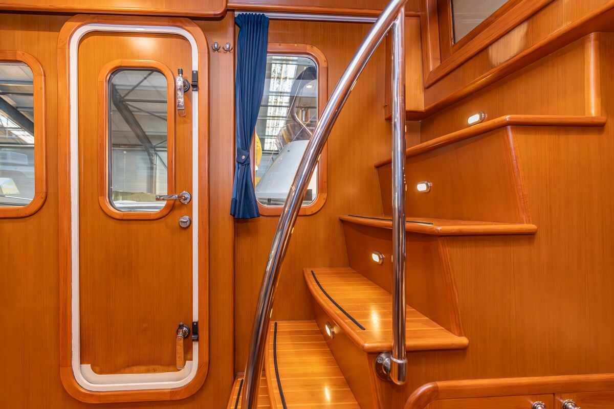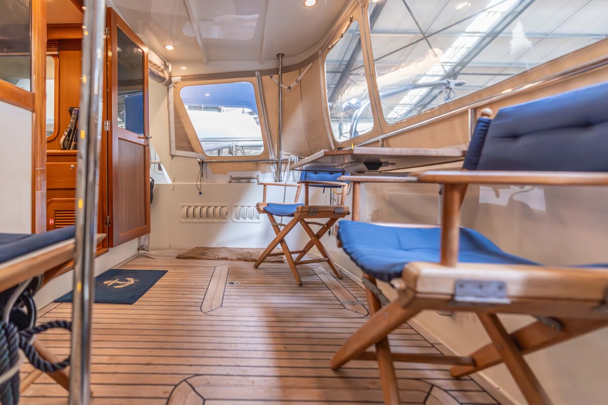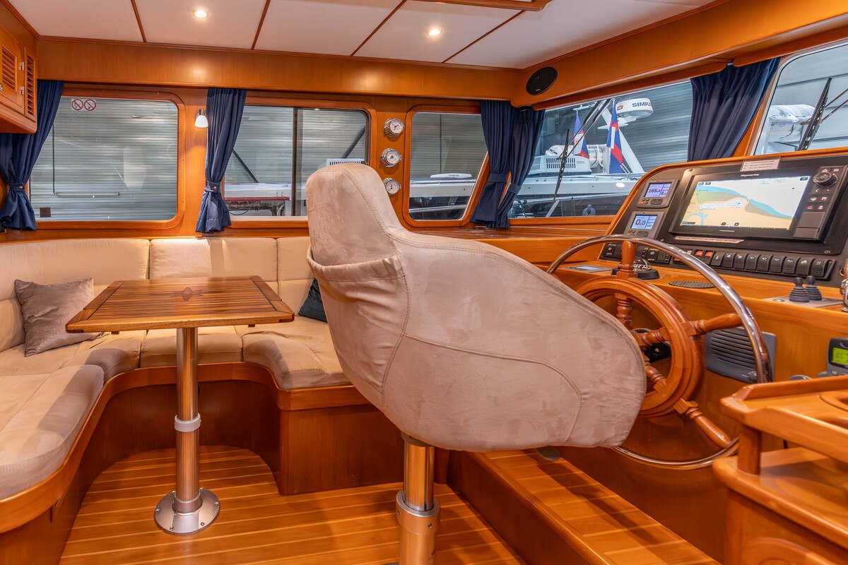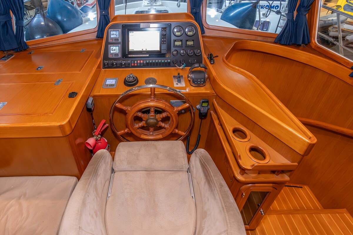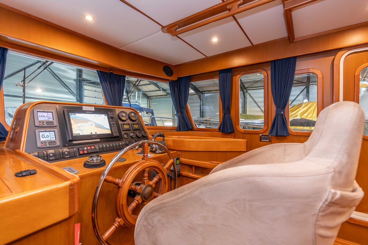 Prachtig robuust gebouwd schip, type Trawler. Uitgevoerd met hoge kwaliteit betimmering binnen en massief teakdek buiten. Voorzien van alle gemakken, wat een langer verblijf uitermate geschikt maakt.