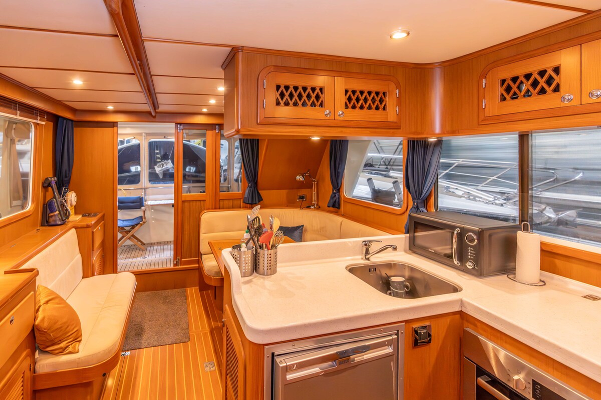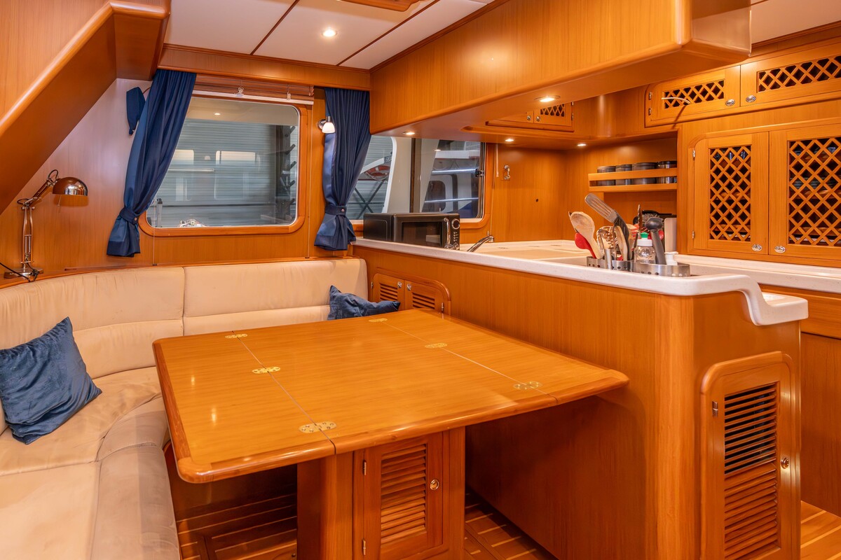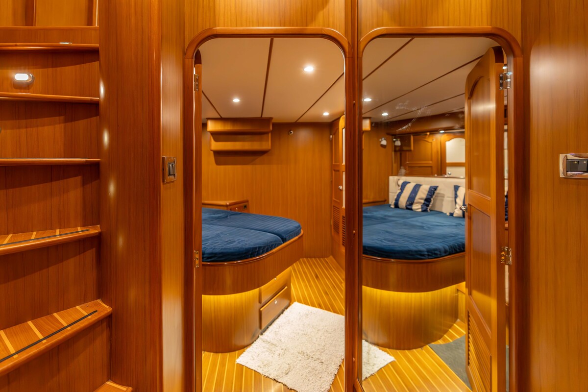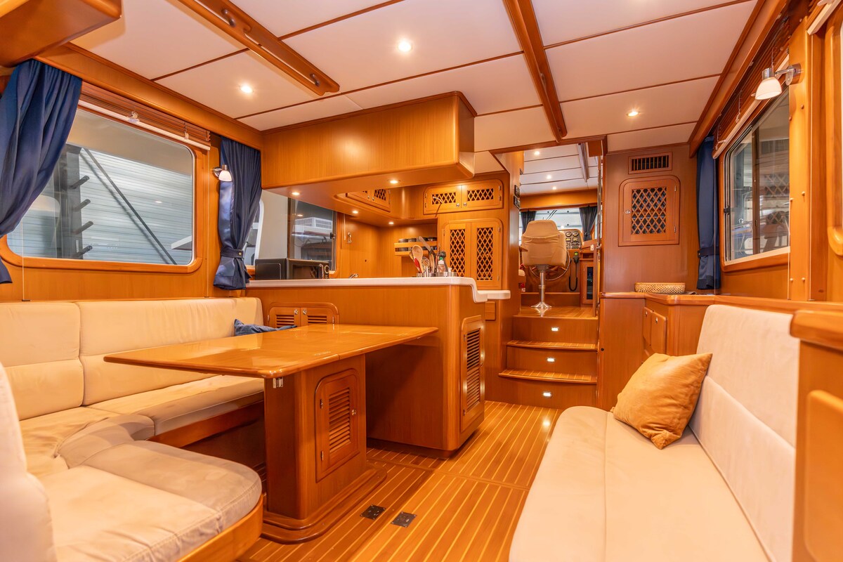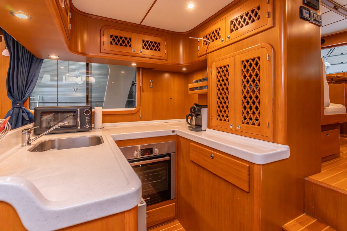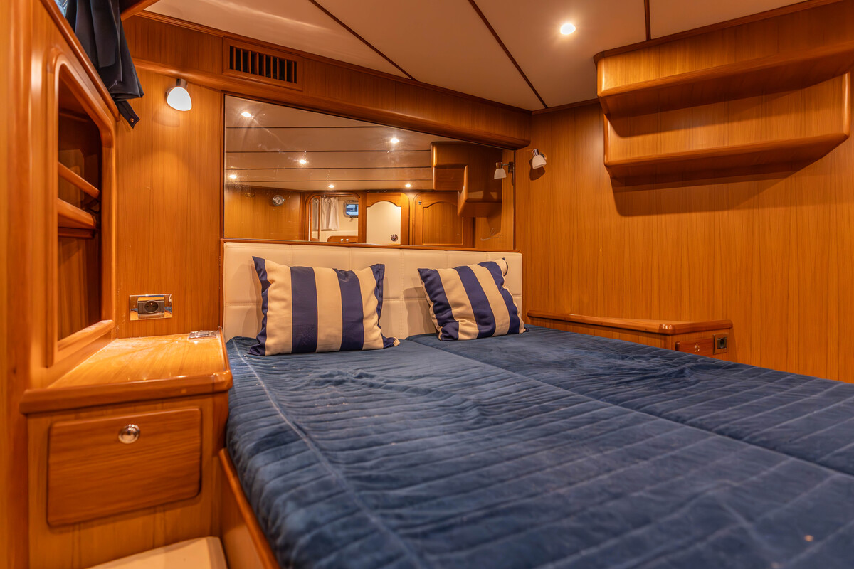 Prachtig robuust gebouwd schip, type Trawler. Uitgevoerd met hoge kwaliteit betimmering binnen en massief teakdek buiten. Voorzien van alle gemakken, wat een langer verblijf uitermate geschikt maakt.