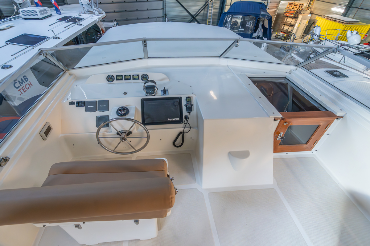 Dit zeer goed onderhouden schip is door zijn praktische indeling, met grote stuurhut, aparte salon met keuken, achterkuip en flybridge, onder alle weersomstandigheden te bevaren.