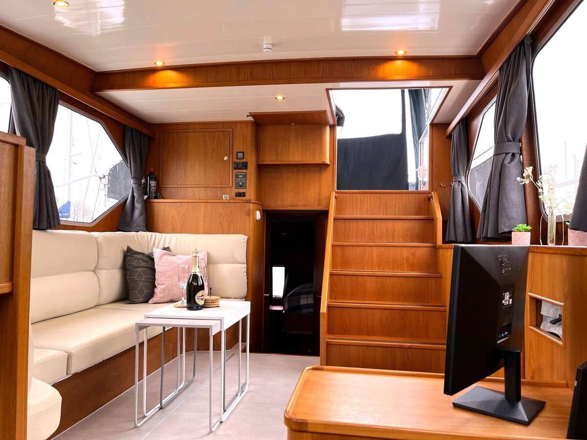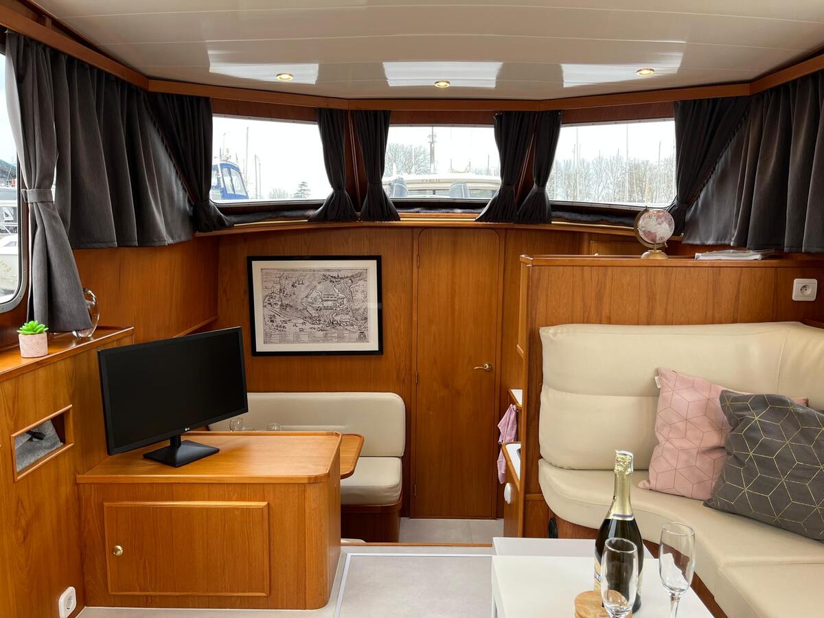 Met twee ruime hutten (beide met een tweepersoonsbed), een lichte salon, een moderne hoekkombuis en een gezellige dinette biedt dit schip alle comfort voor langere verblijven aan boord. Dankzij de grote Aluminium ramen is er veel lichtinval en een ruimtelijk gevoel. De recent vernieuwde pvc-vloer is onderhoudsvriendelijk en stijlvol.