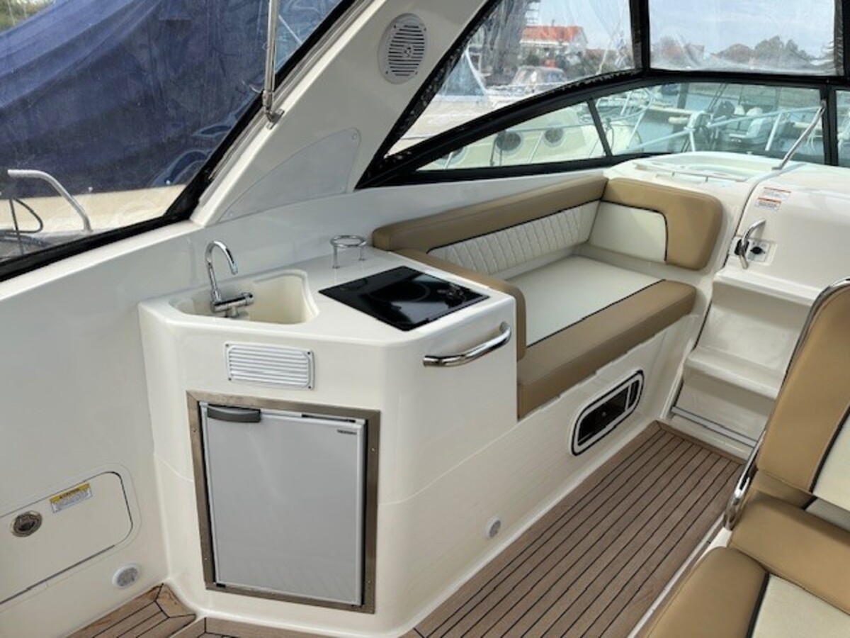 Sportieve motorcruiser in bijna nieuwstaat van 1e eigenaar, met een 350 pk Mercruiser inboardmotor. Geschikt voor zowel kort als langer verblijf op het water. Uitgerust met een 2-assige trailer, merk Freewheel van 2023. Uitermate geschikt om ook andere vaargebieden te ontdekken. Eigenaar is met het schip naar de Adriatische kust geweest, en heeft op het Veerse meer en Oosterschelde gevaren.