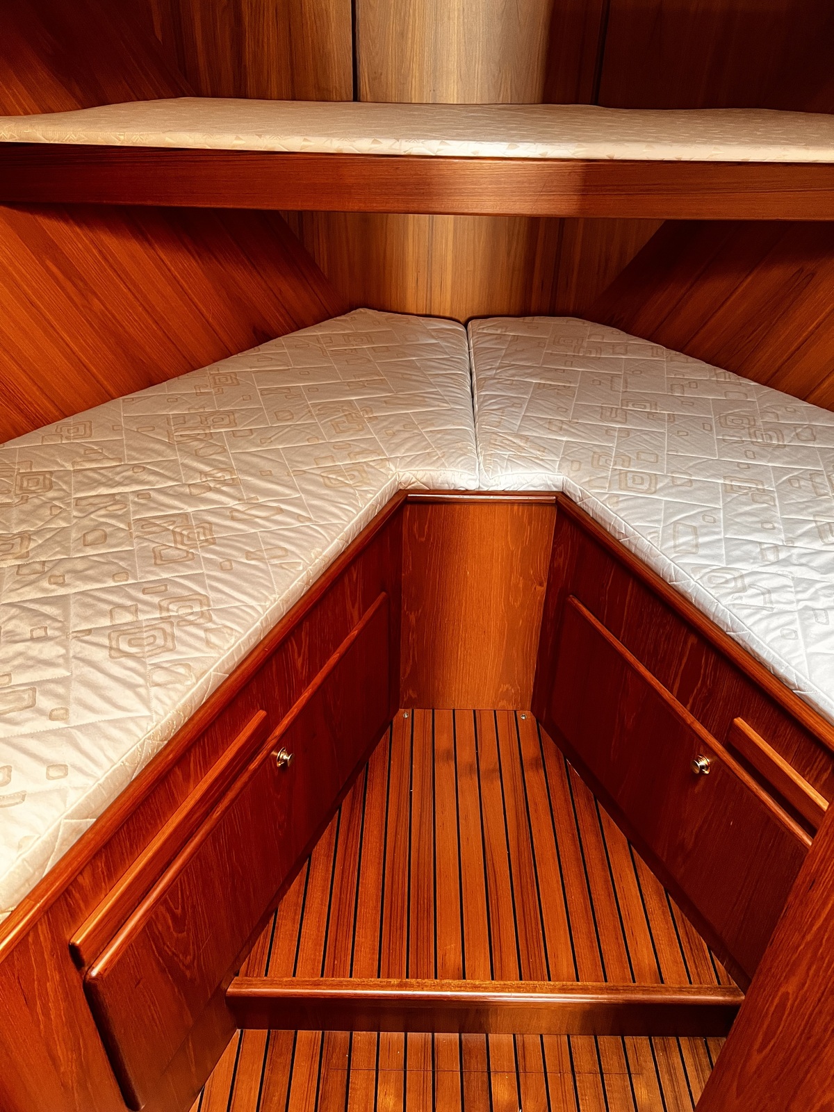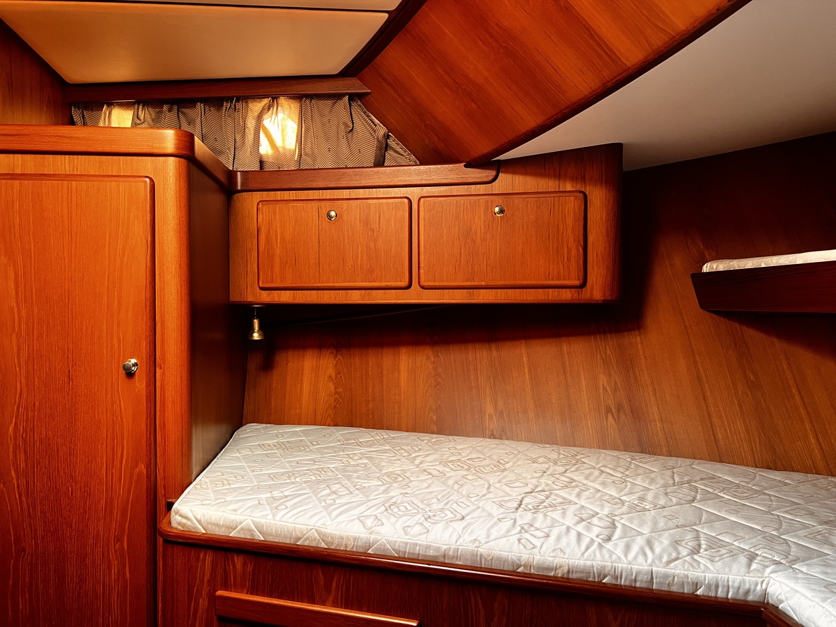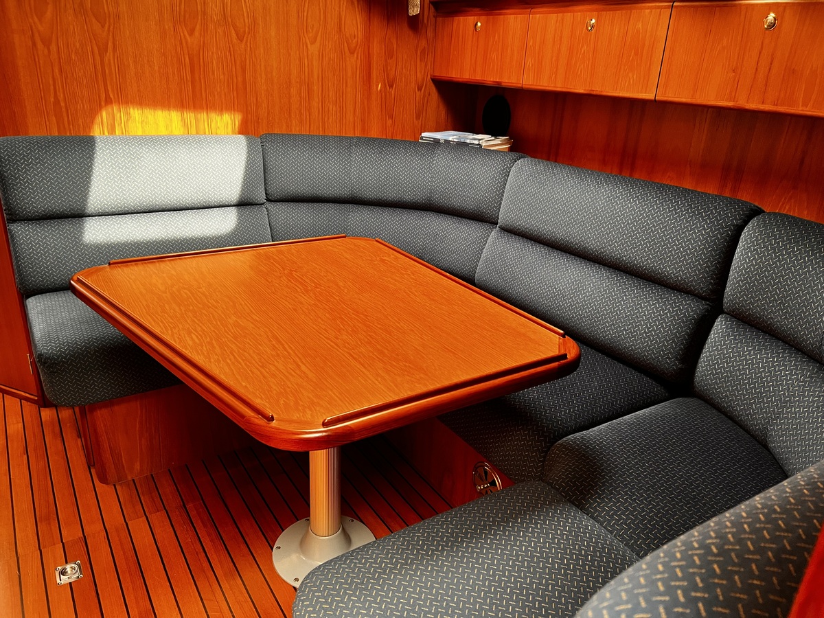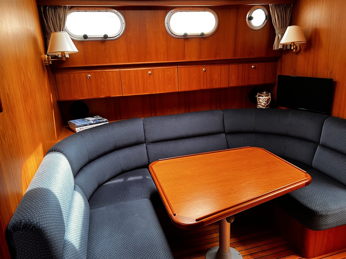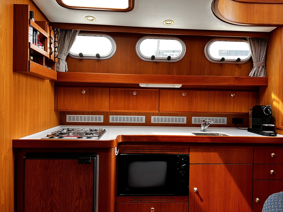 2-persoons voorhut, natte cel met toilet en douche aan stuurboordzijde, salon en kombuis beneden deks. En 2-persoons middenhut. Stuurhut met salon bovendeks