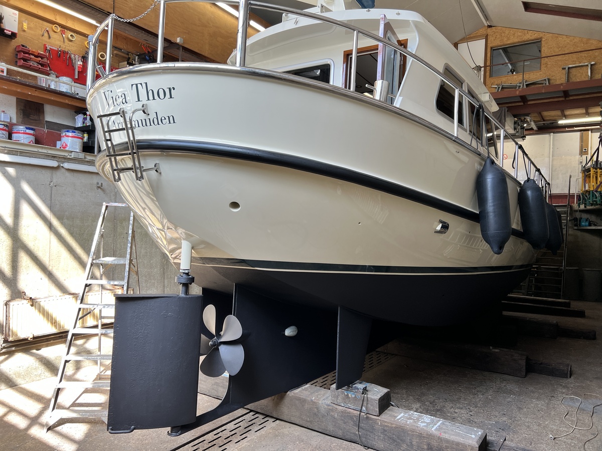 Volledig geschilderd in 2023 boven -en onderwaterschip professioneel geschuurd tot op de Epoxy coating en opnieuw opgebouwd