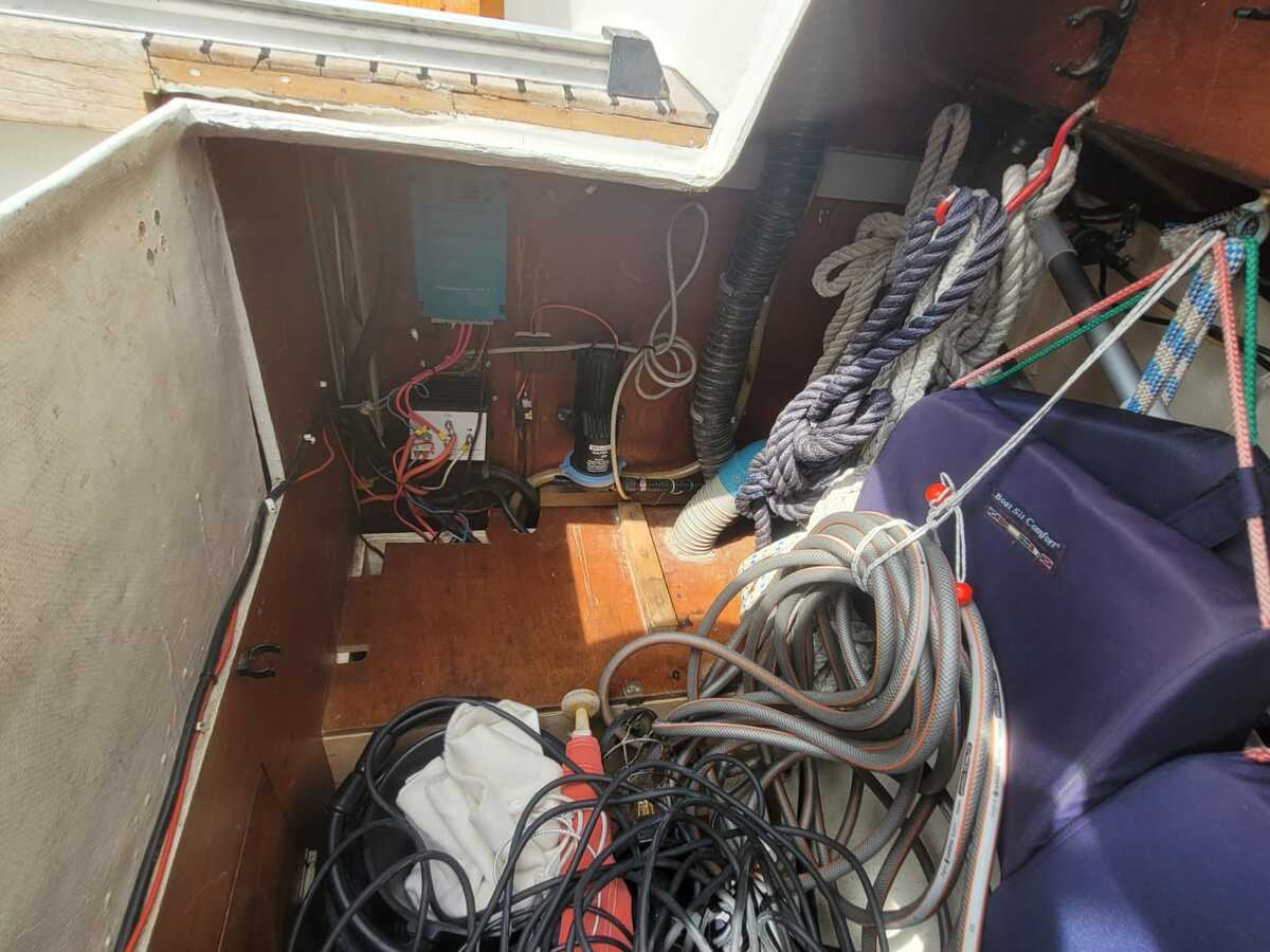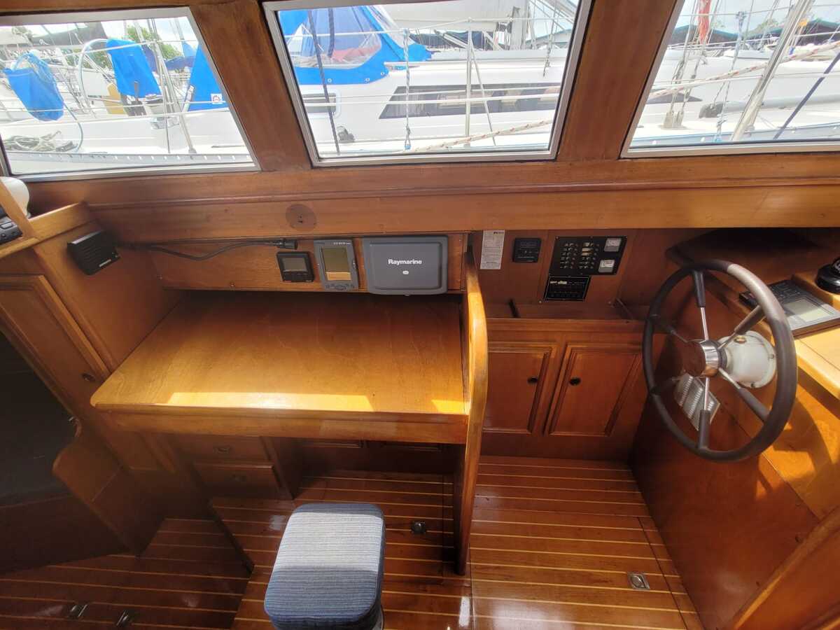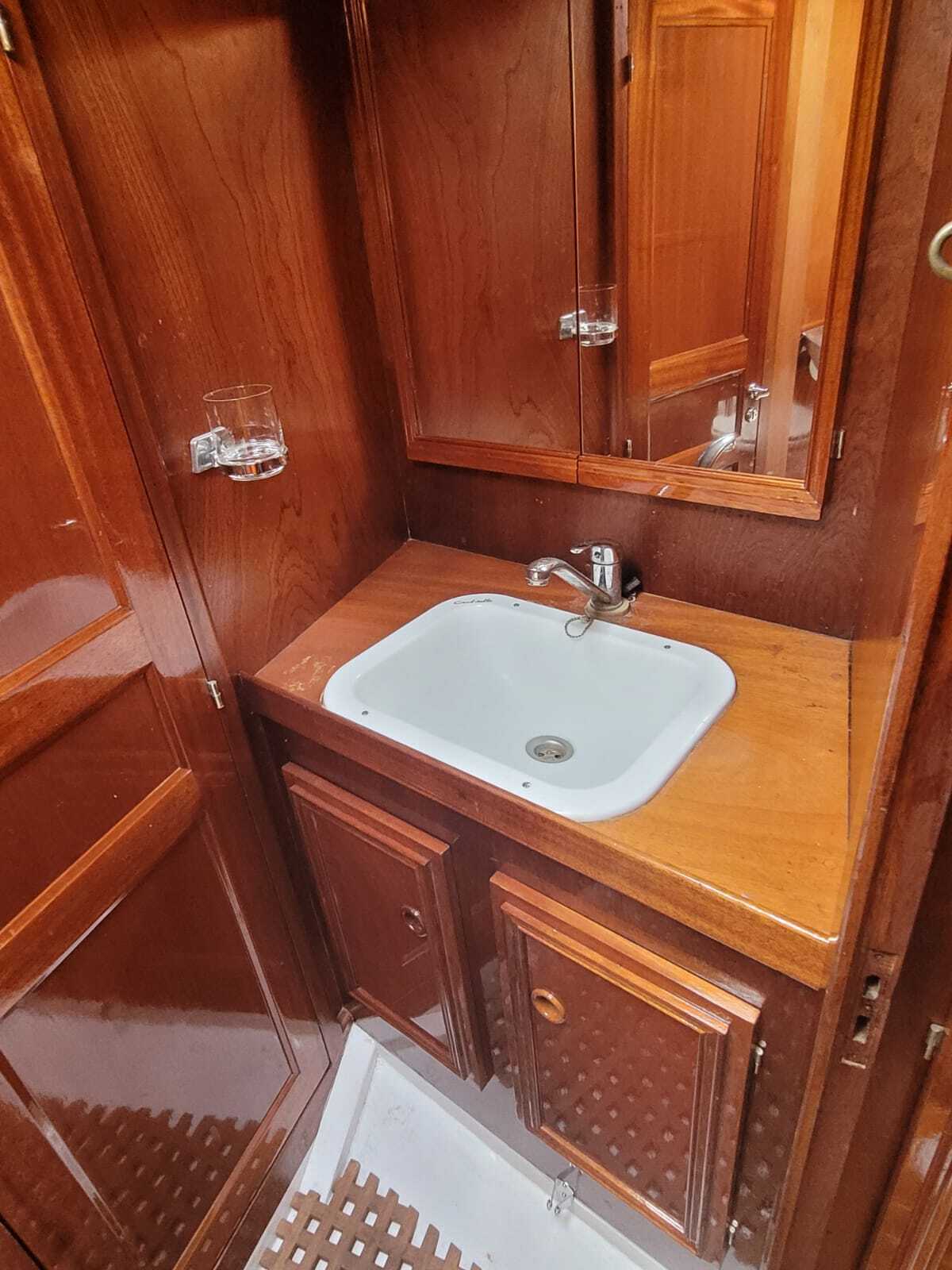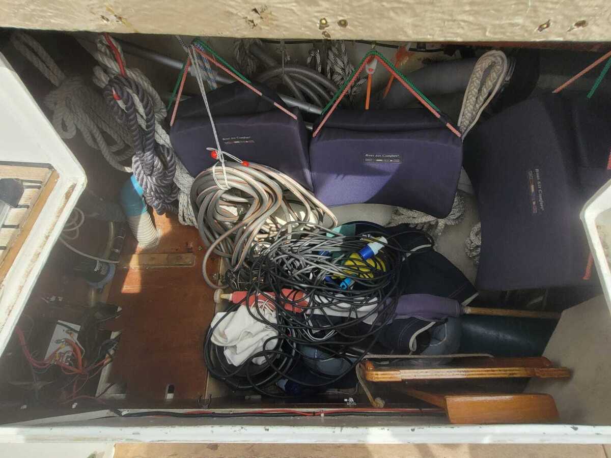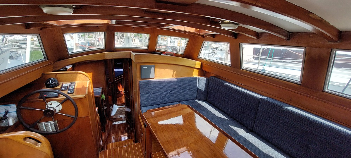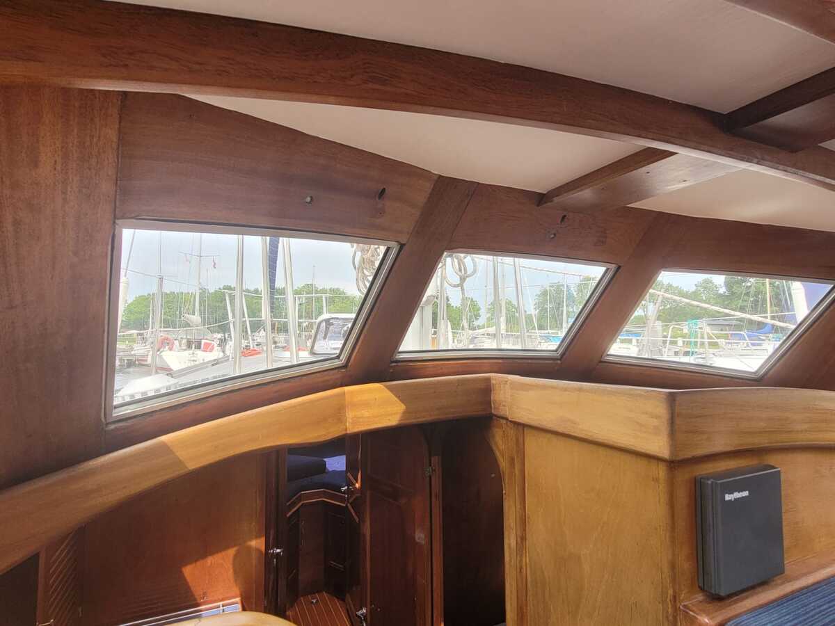 Het teakdek is vernieuwd in 2000, de naden opnieuw gerubberd in 2024.