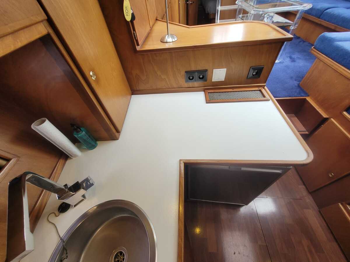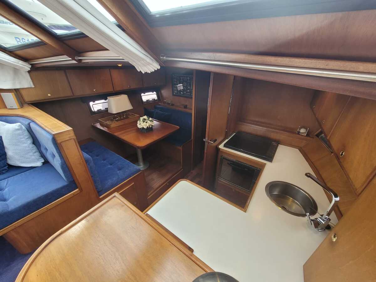 Aan boord vindt u een gezellige salon met veel lichtinval, uitgevoerd in warm mahoniehout en voorzien van een ruime dinette. De keuken is praktisch ingericht met voldoende kastruimte en de nodige voorzieningen voor langere verblijven aan boord. Verder beschikt de Savannah over twee hutten met in totaal vier vaste slaapplaatsen, een natte cel met douche en elektrisch toilet, en zowel binnen- als buitendouche.