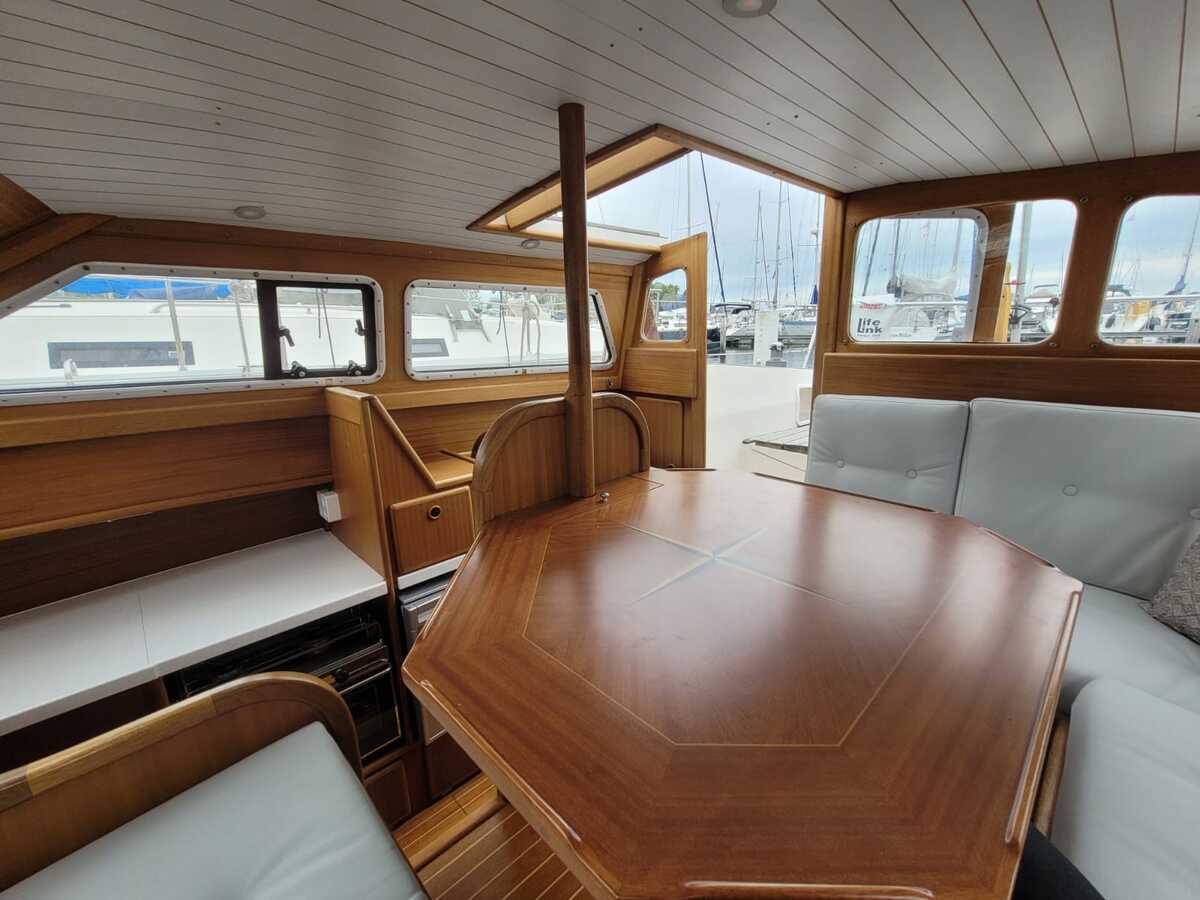 De deksalon biedt een panoramisch uitzicht en veel lichtinval, waardoor het interieur een ruim en huiselijk gevoel geeft. Dankzij de slimme indeling en royale stahoogte voelt de 32 DS ruimer dan veel grotere jachten, terwijl zij toch handzaam blijft in havens en sluizen.