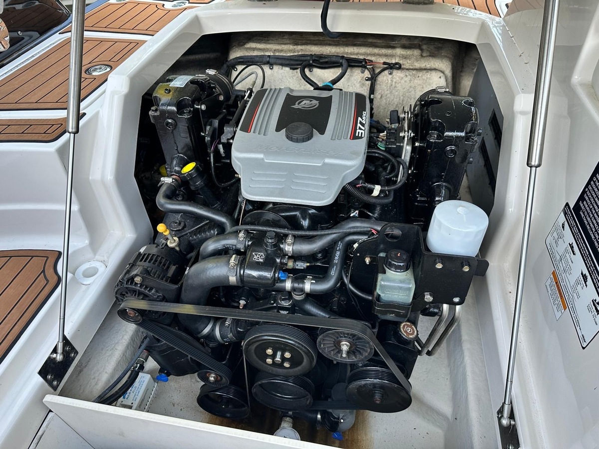 Aangedreven door een krachtige Mercruiser 377 MAG Bravo 3 met 239 kW (325 pk) en slechts ca. 605 motoruren. Ideaal voor watersportliefhebbers die houden van snelheid én comfort.