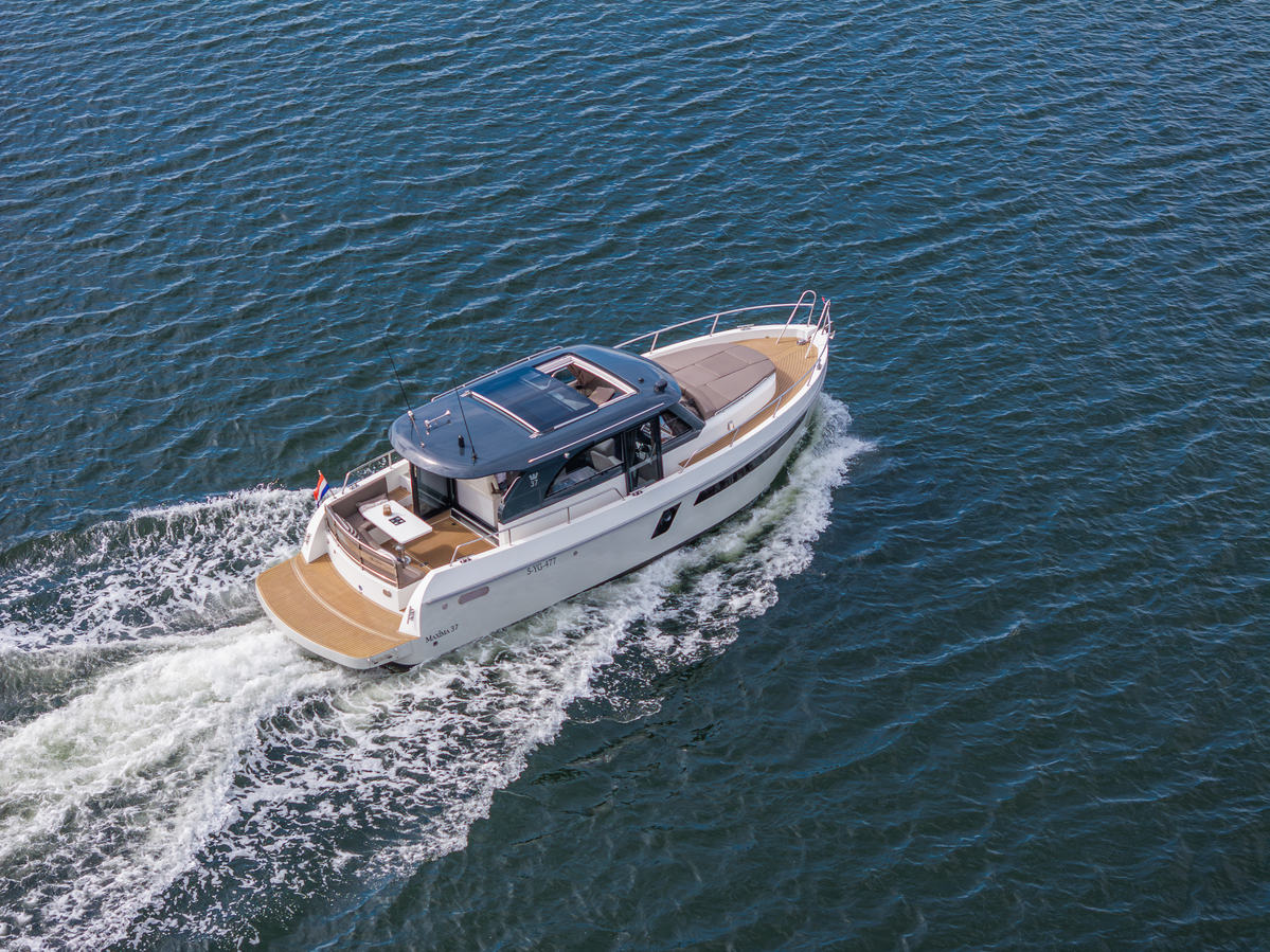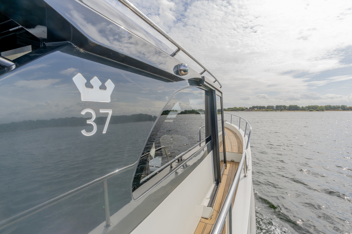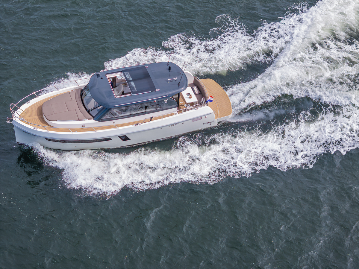 De Maxima 37 Cabin is 11,60 meter lang, 3,80 meter breed en heeft een diepgang van 1,05 meter. Dankzij de doorvaarthoogte van slechts 3,00 meter is zij veelzijdig inzetbaar op zowel binnenwateren als grotere meren en kustgebieden. Het schip wordt aangedreven door een betrouwbare Volvo Penta D4 (270 pk Diesel, bouwjaar 2023), met ca. 290 draaiuren. Deze krachtige en zuinige motor brengt u ontspannen op kruissnelheid (12 km/u) of sportief tot 33 km/u.