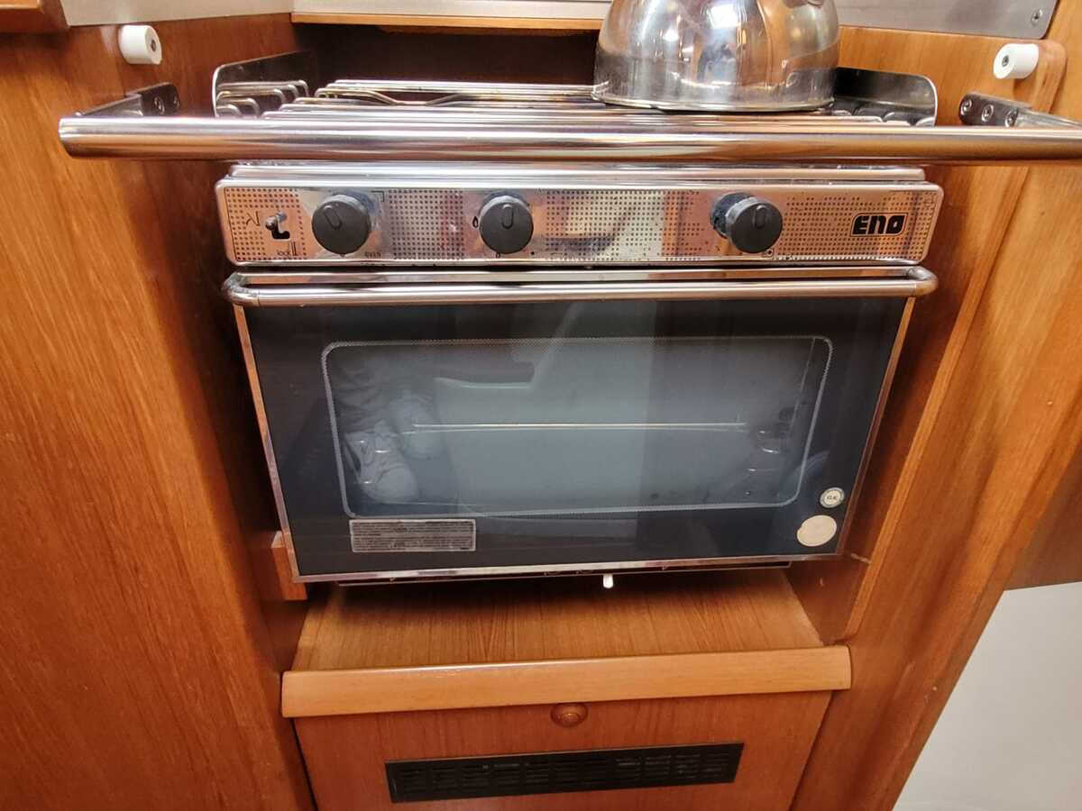 De kombuis is compleet uitgerust met een 2-pits gasfornuis, oven, koelkast (200 liter) en een klein vriesvak. Voor comfort onderweg zijn er een elektrisch drukwatersysteem, een 40-liter boiler en verwarming via Webasto hetelucht. Het sanitair bestaat uit een handmatig toilet, een binnendouche (warm/koud) en een buitendouche (koud).