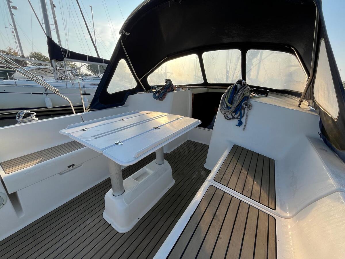 Ontworpen door Daniel Andrieu staat de De Sun Odyssey 40 bekend om zijn stabiele rondspant-romp en uitstekende balans tussen snelheid en comfort. Met een lengte van 12,20 m, een breedte van 3,95 m en een diepgang van 1,95 m biedt dit schip ruime mogelijkheden. De dubbele stuurwielen in de achterkuip zorgen voor een veilige en gemakkelijke bediening, terwijl het kunstteak (Flexteak, 2017) en de kuiptafel het buiten vertoeven zeer comfortabel maken.