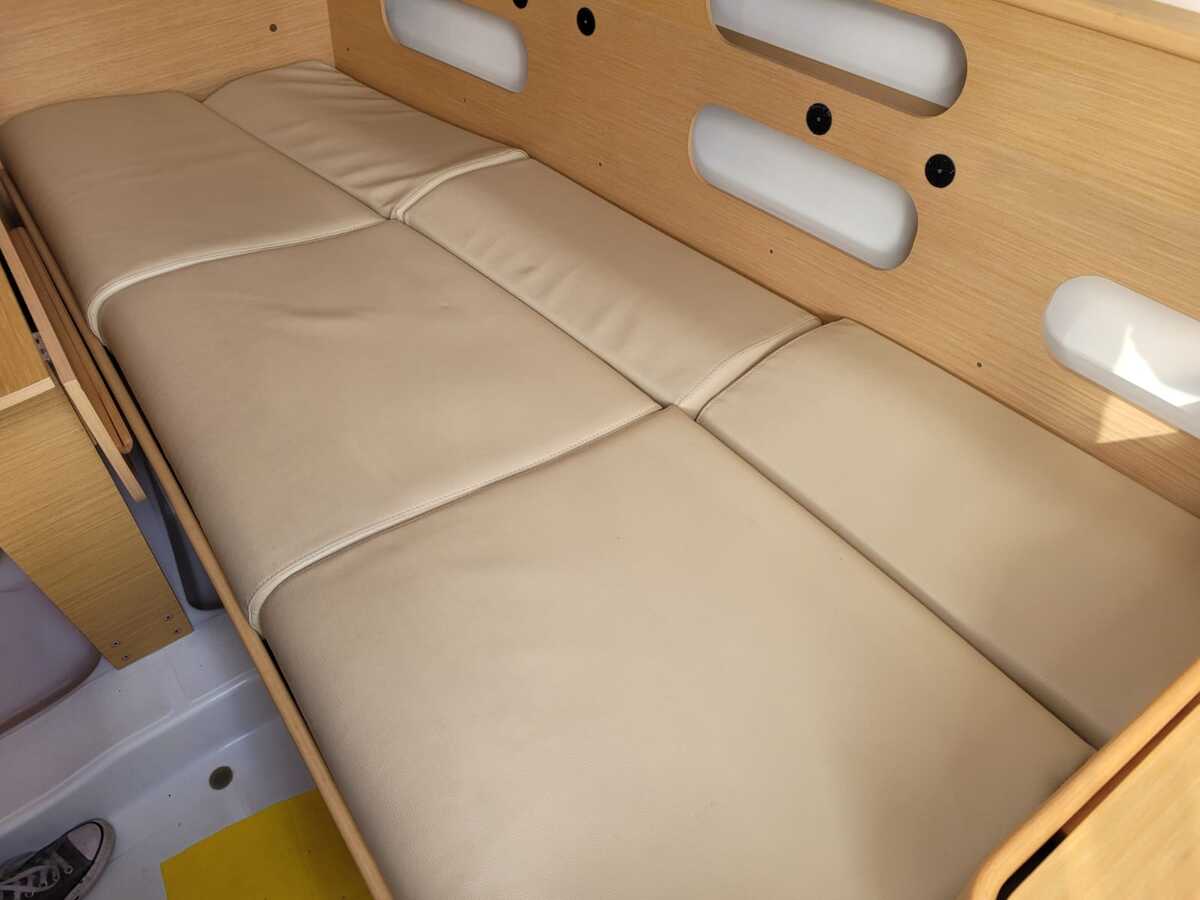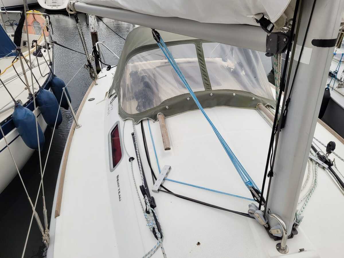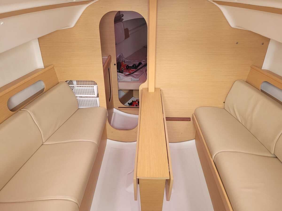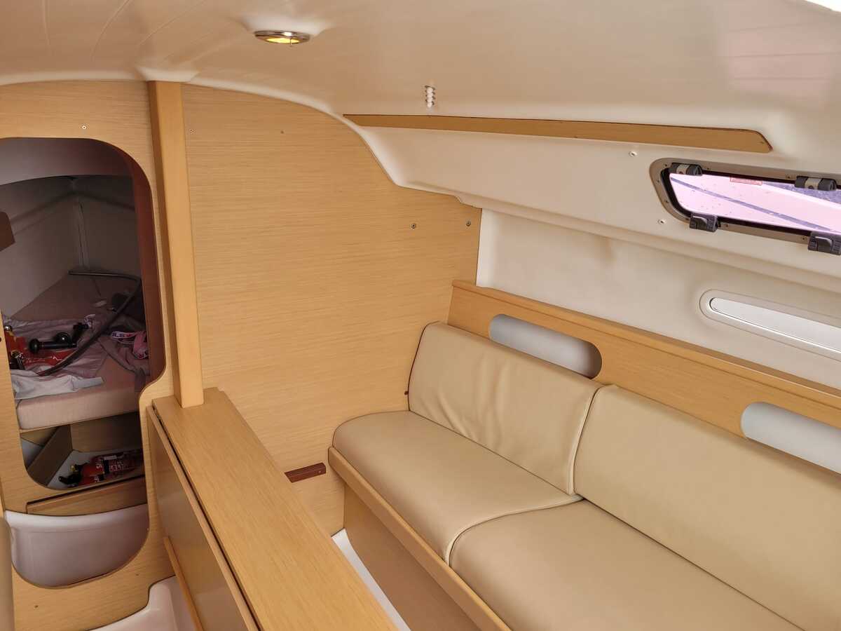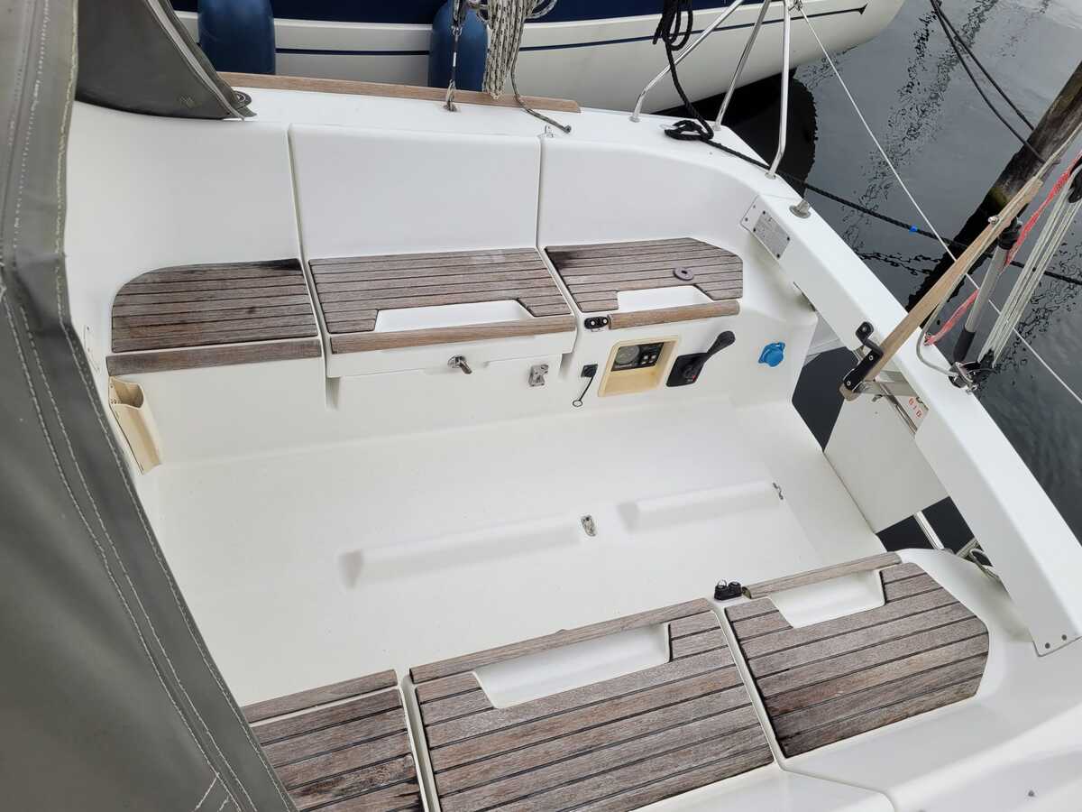 Met haar lengte van 7,90 meter is de First 25.7S compact genoeg om eenvoudig te hanteren, maar biedt ze verrassend veel binnenruimte. De ruime kuip en overzichtelijke dekopstelling maken haar geschikt voor zowel solozeilers als kleine bemanning. Binnenin vindt u een gezellige kajuit met stahoogte van ca. 175cm, een praktische kombuis, comfortabele zitbanken en slaapplaatsen voor vier personen.
