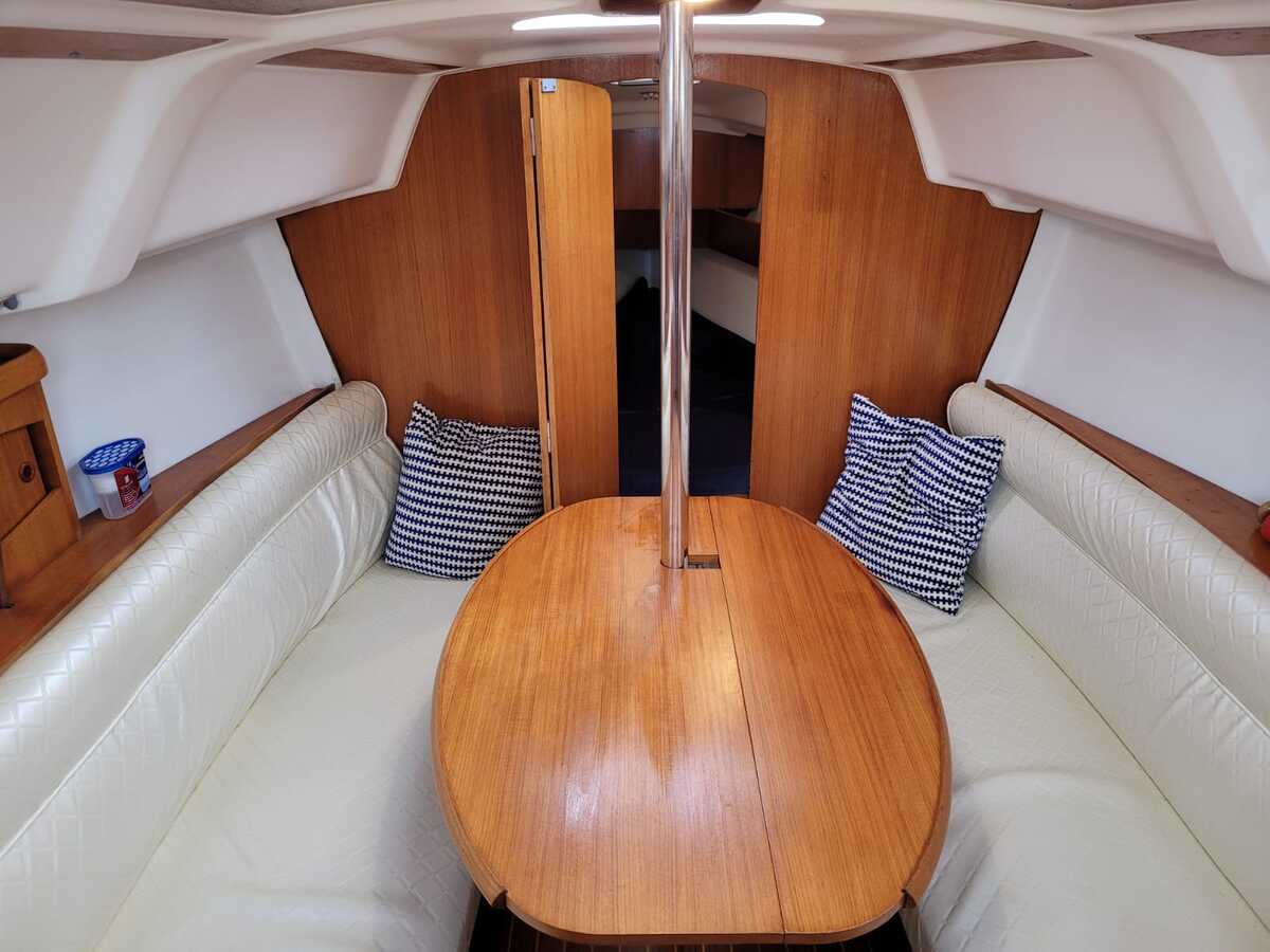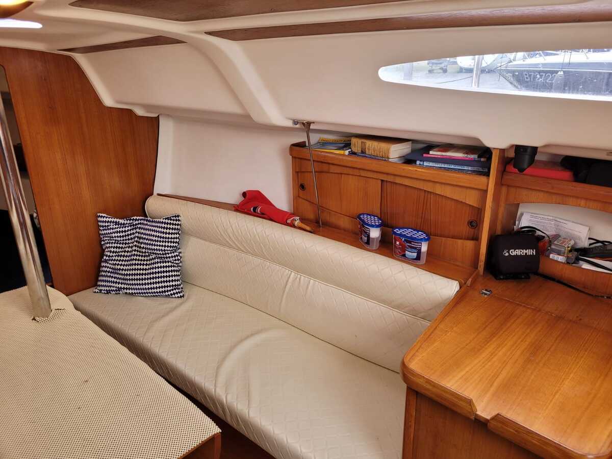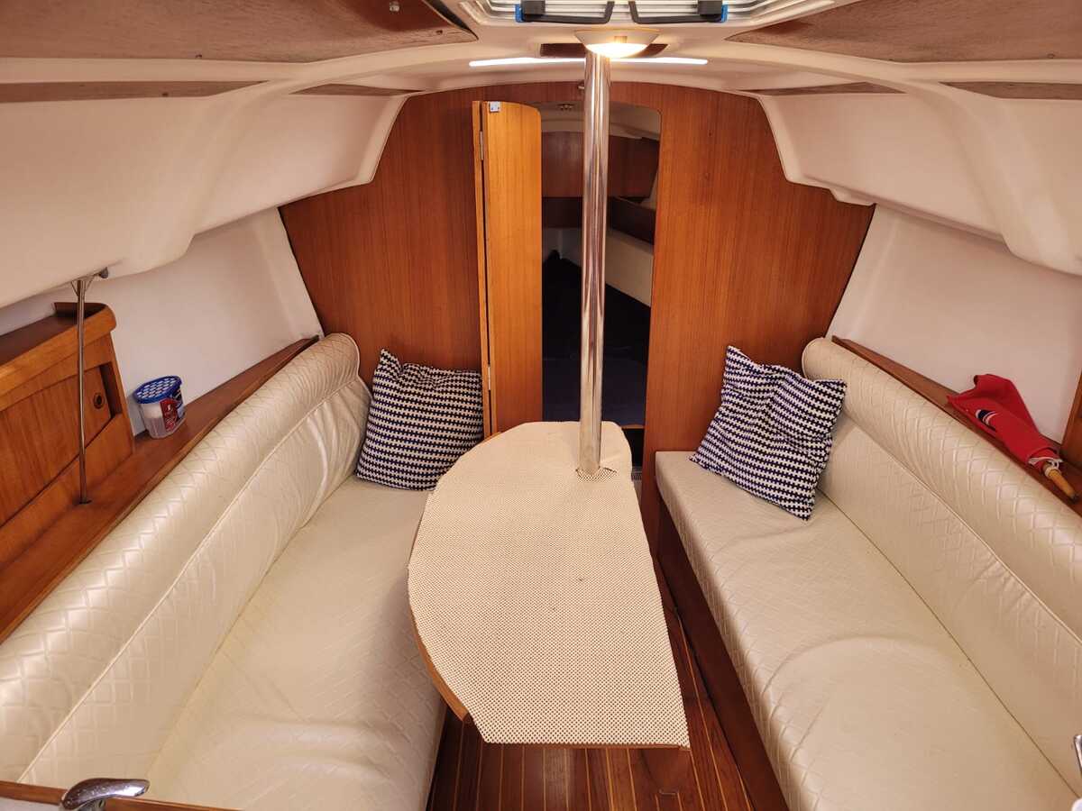 Binnen biedt de Sun Odyssey 29.2 een verrassend ruim en licht interieur met stahoogte van 1,75 m. De boot beschikt over vier vaste slaapplaatsen (voor- en achterhut) en twee extra in de salon, wat het schip geschikt maakt voor kleine gezinnen of stellen.