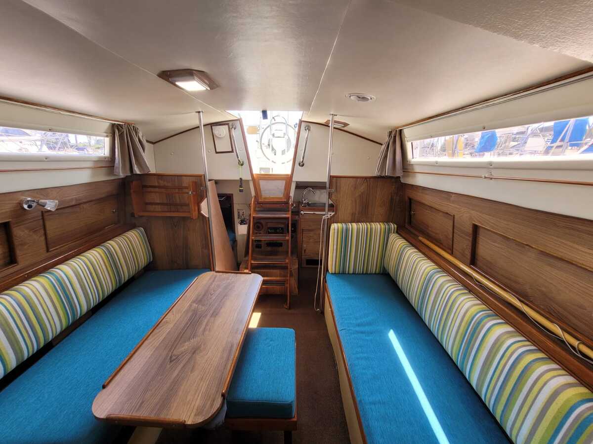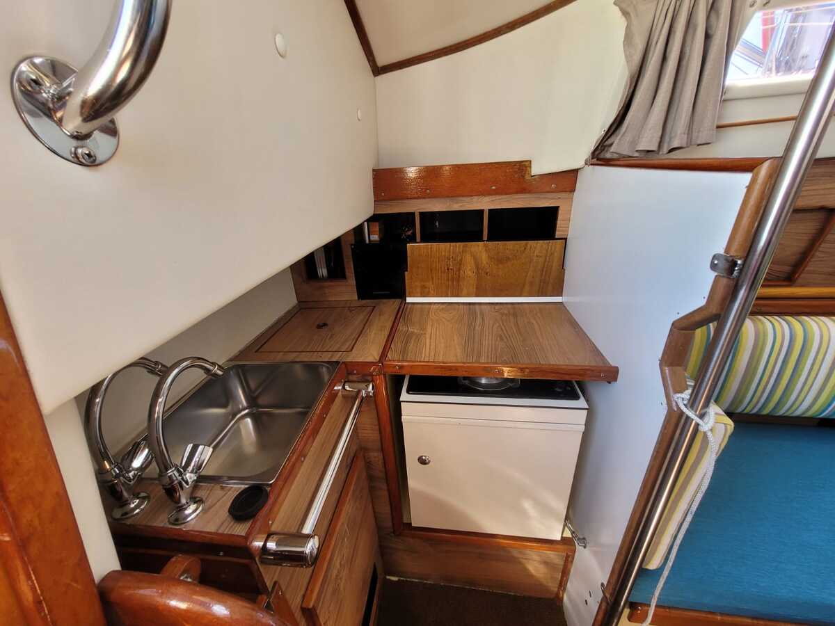 Met 3 vaste slaapplaatsen is deze zeilboot perfect voor langere reizen met familie of vrienden. De salon heeft een stahoogte van 190 cm, een klassiek houten interieur en complete uitrusting inclusief 2-pits gasfornuis, Jabsco waterpomp met koolstoffilter (2021), en warme luchtverwarming (Webasto Airtop 2000).