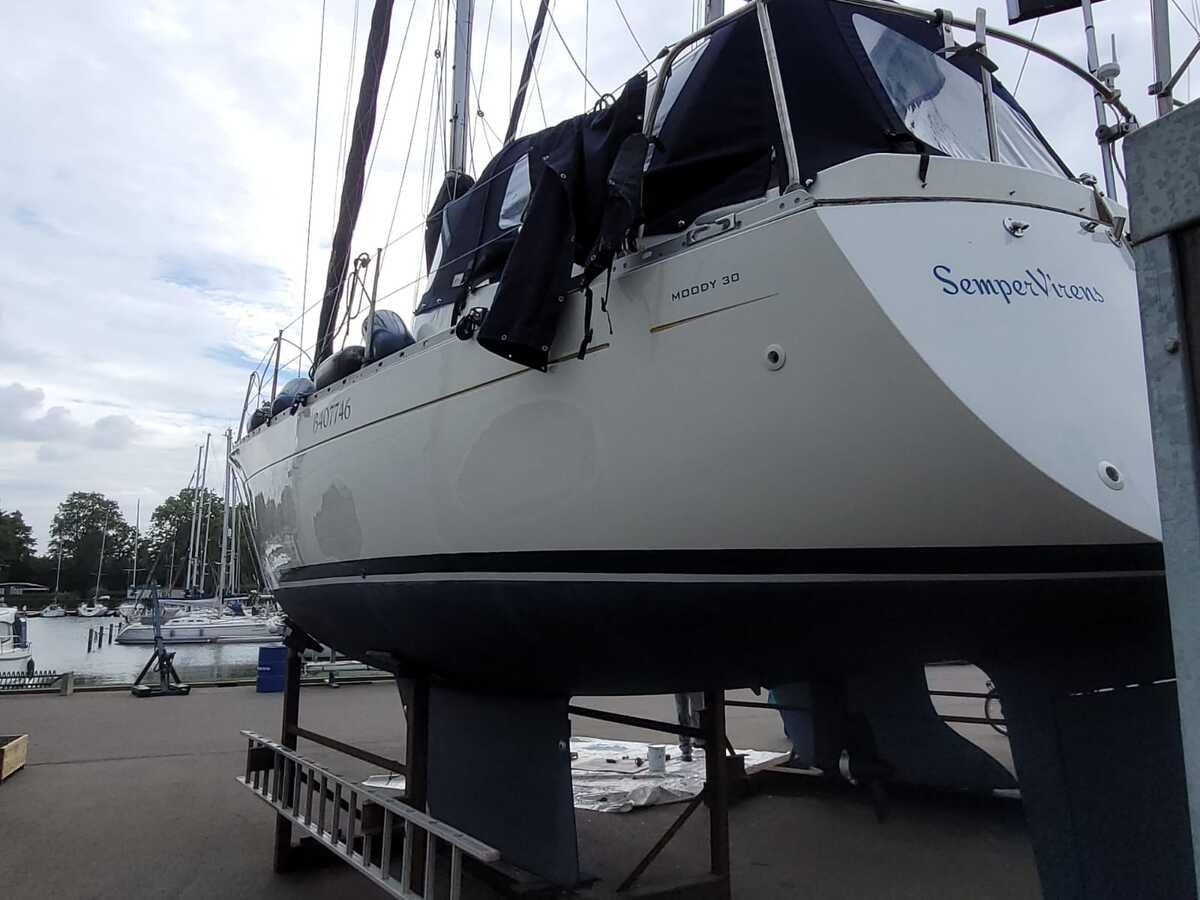 Deze Moody 30 is eigendom geweest van slechts drie eigenaren. Het schip heeft bijna elk jaar op de wal gestaan en is steeds professioneel onderhouden. In 2015 heeft de romp een epoxybehandeling ondergaan met 7 lagen Gelshield – osmosevrij! Het onderwaterschip kreeg in de maand juni 2025 nog nieuwe antifouling, anodes en motorbeurt.