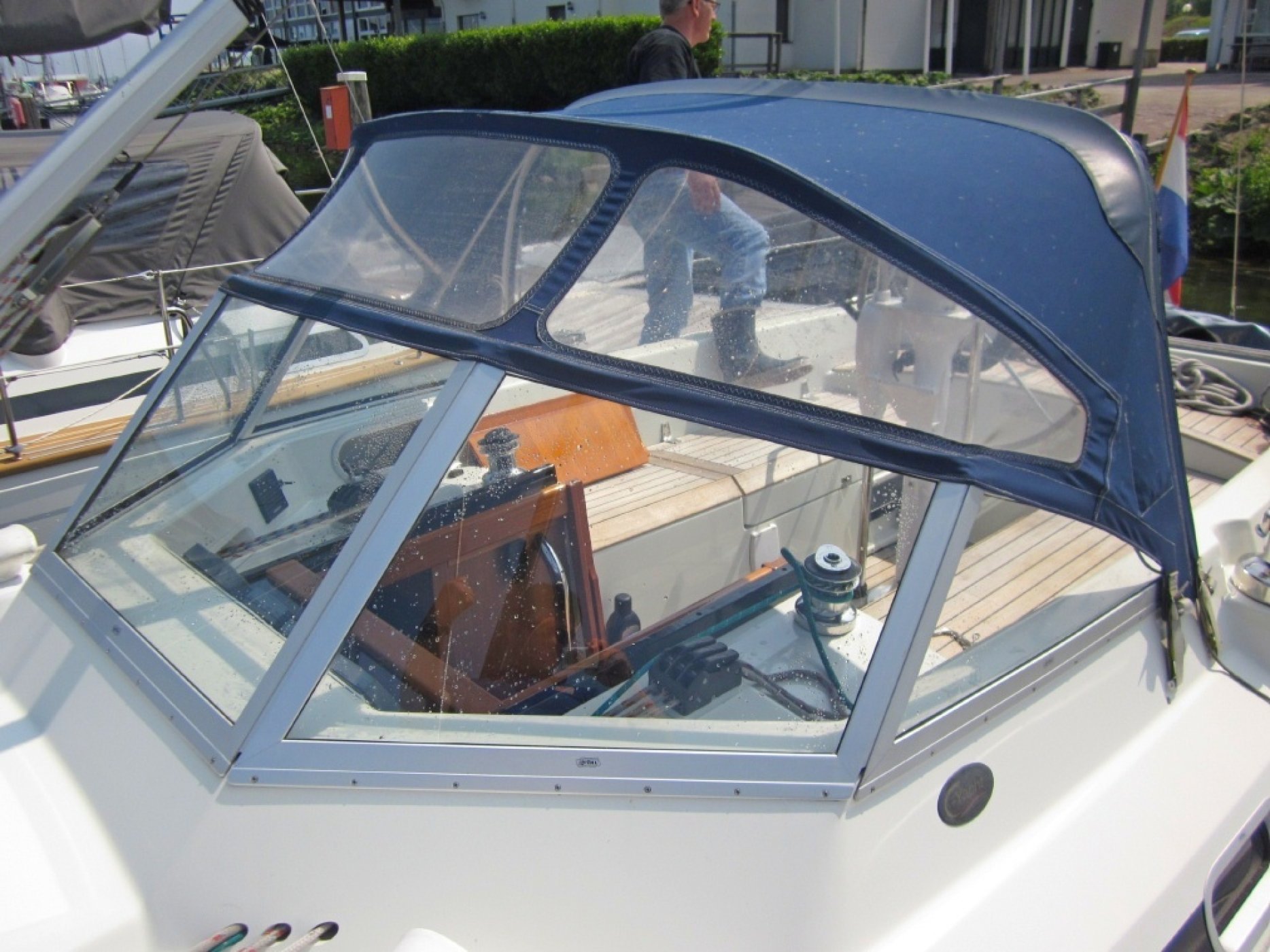 Met vast windscherm en RVS frame en kuipentent met RVS frame